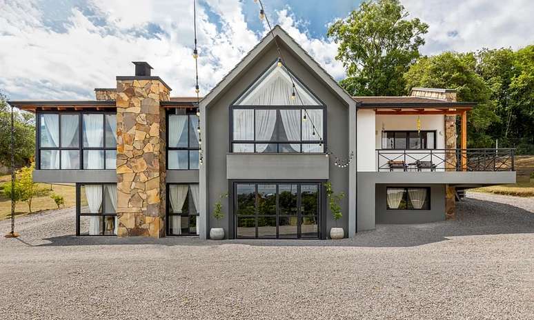 Charmosa, essa casa de campo tem a conexão e o frescor da natureza. Localizada em Guaporé, no Rio Grande do Sul, ela foi construída do zero e pensada como primeiro lar de um jovem casal.