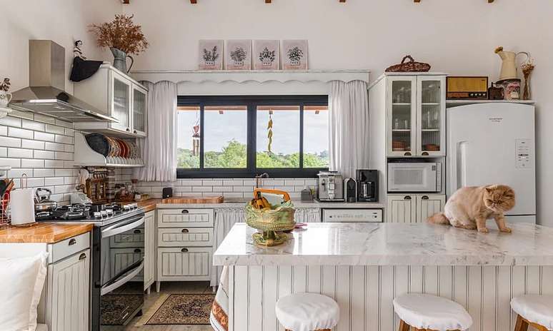 Casa de campo charmosa tem decoração cottage e conexão com a natureza