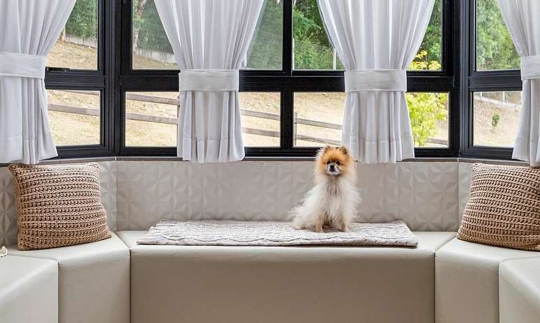 Dele, resulta uma grande janela na fachada principal em formato de triângulo, que abriga o banco da mesa de jantar.