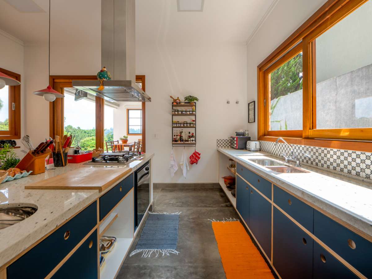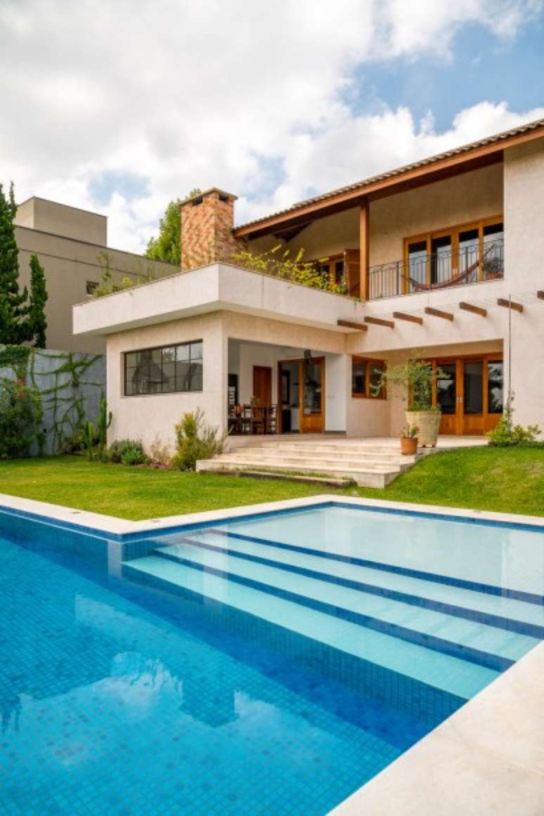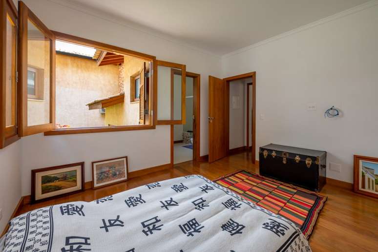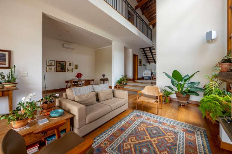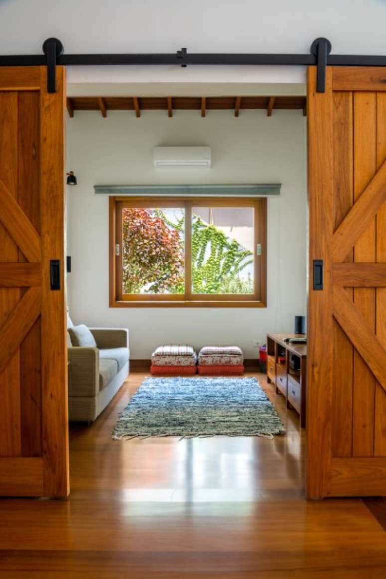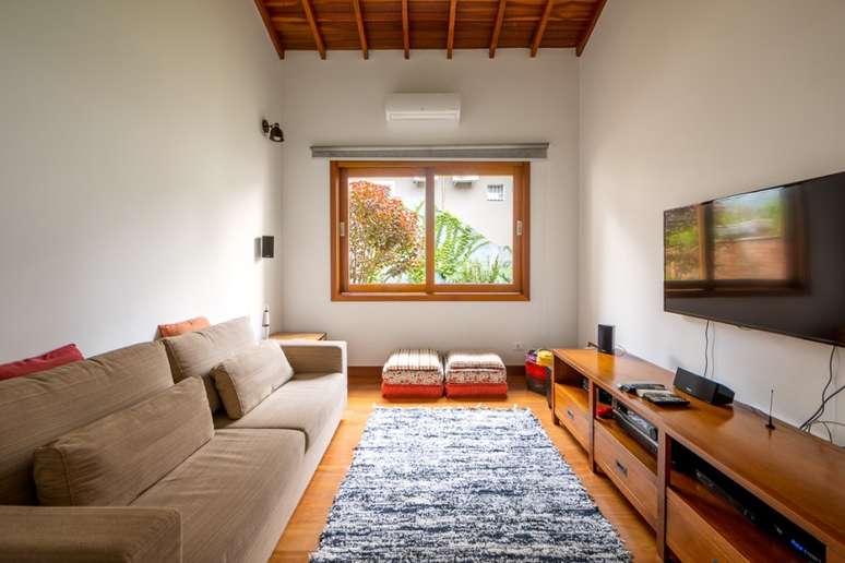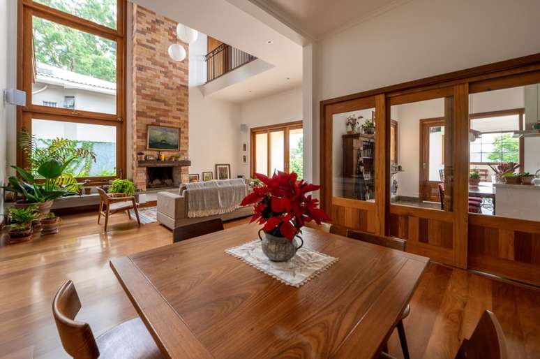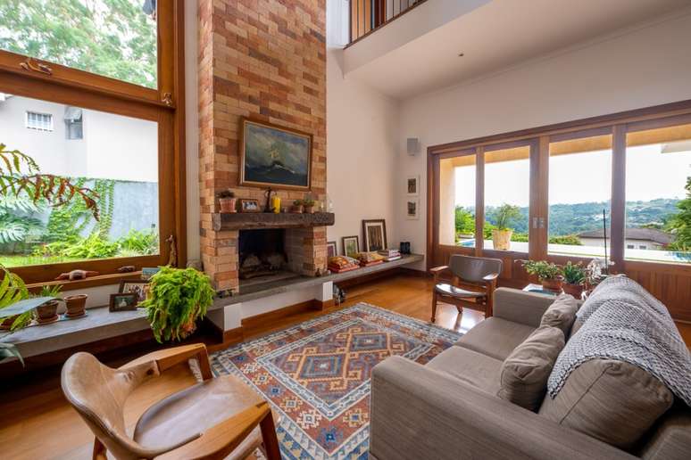 "Outra premissa dos proprietários era que a casa fosse aconchegante e abusasse do uso de madeira e de materiais mais rústicos. A ideia era uma casa de campo, porém numa área urbana, afinal estamos a 26 km do centro de SP", contam os profissionais.