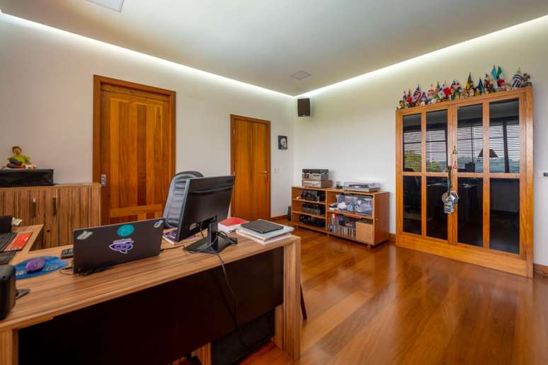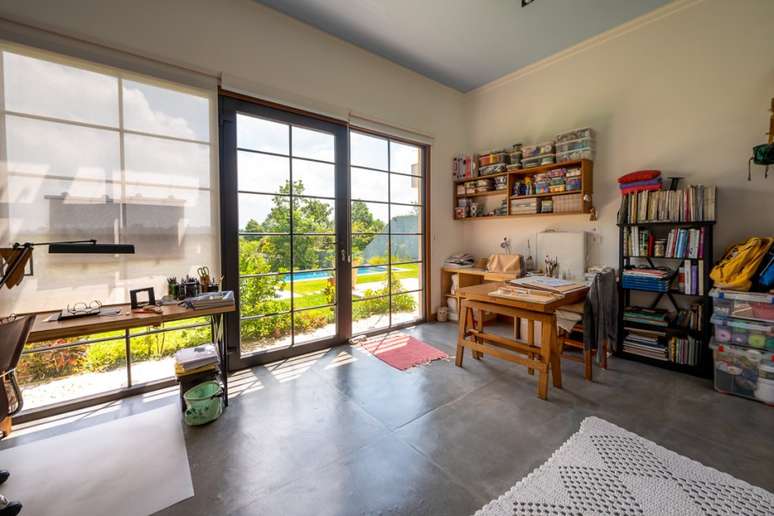 Já a para a esposa, o estúdio foi para que ela pudesse exercer a função de artes plásticas. Os dois espaços são voltados para o horizonte, onde a vista é impressionante.