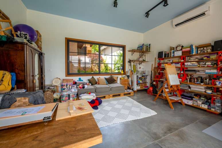 O resultado final foi uma residência de 450 m² em um terreno de 1,2 mil m² com dois estúdios: o marido curte música e possui uma extensa coleção de discos de vinis e CDs, além de objetos de grande valor sentimental, como uma máquina de fliperama.