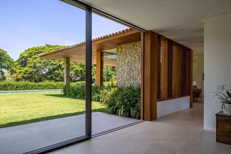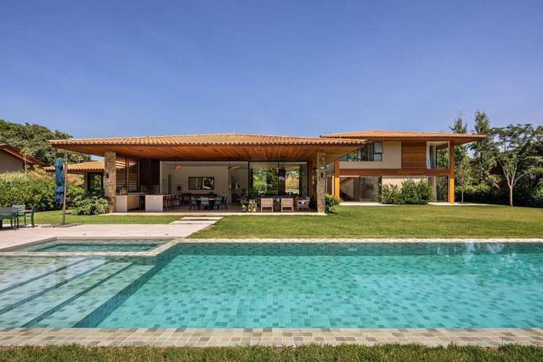O projeto se atentou em delimitar a área íntima das áreas de socialização. "É um lugar onde é possível desfrutar da calma e da privacidade da área íntima e, ao mesmo tempo, aproveitar o contato com a família e os amigos no estar, terraço e piscina", afirma Gilda Meirelles.