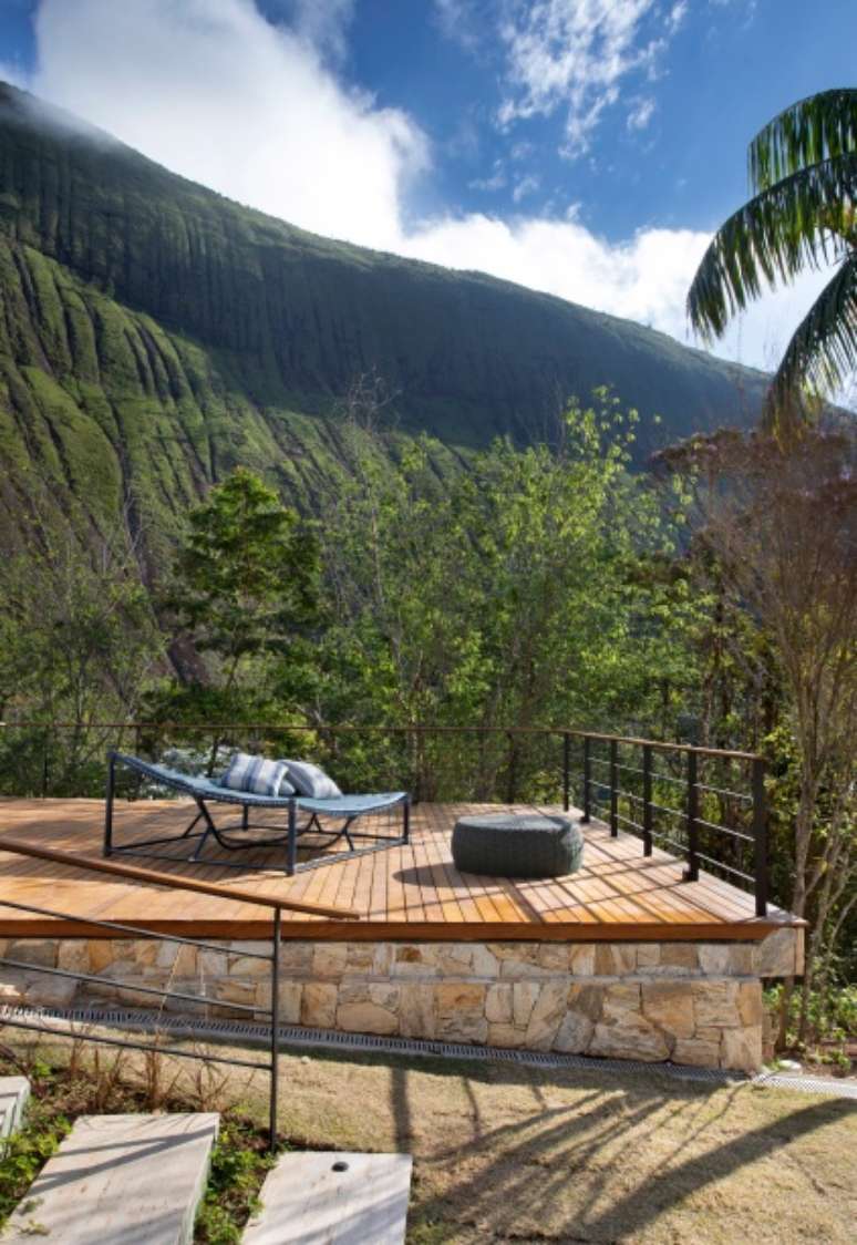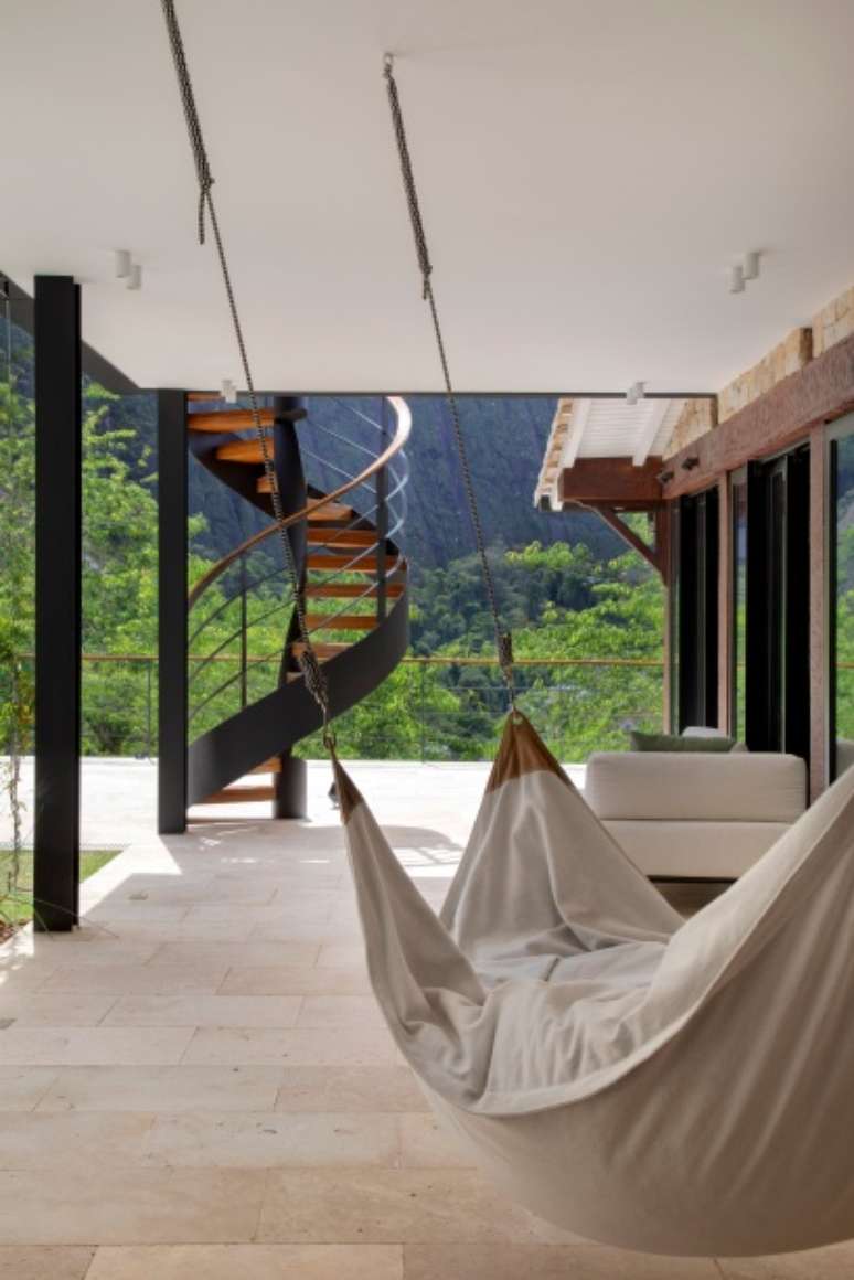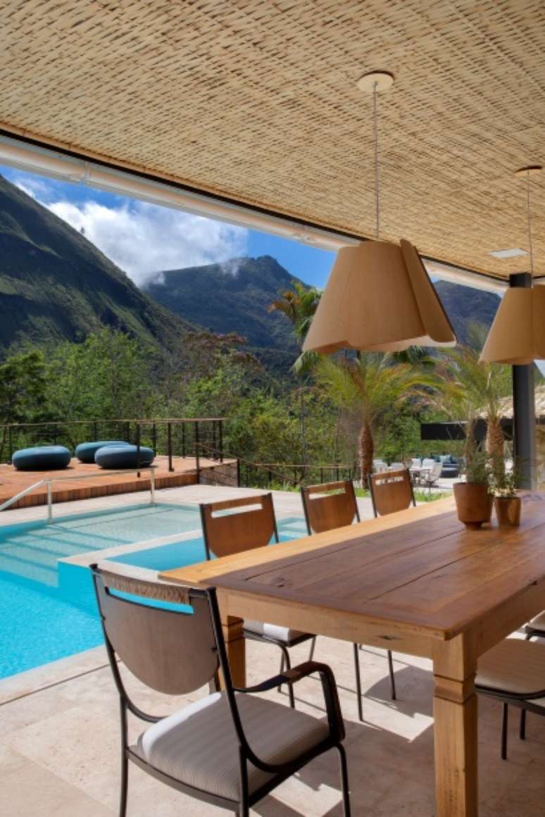 "Ela se encantou pela região de Araras, que por ser mais consolidada, não tem muitos terrenos com vista e imersos na natureza. Na primeira visita a esta casa, a cliente ficou encantada com a presença da natureza e a vista da montanha, mas a casa era muito diferente do que ela buscava.