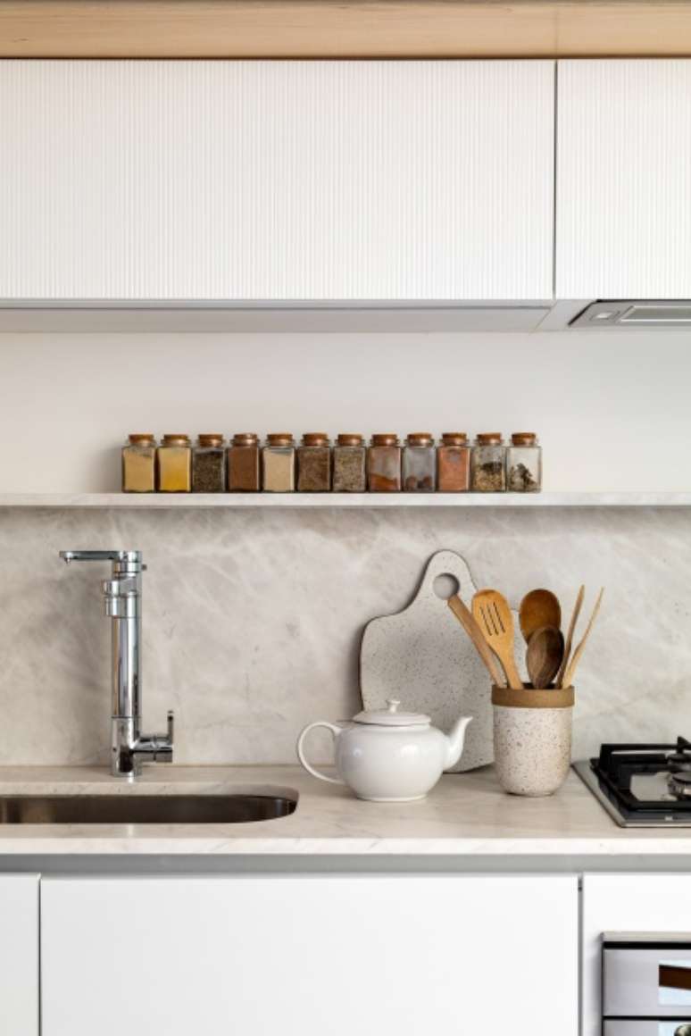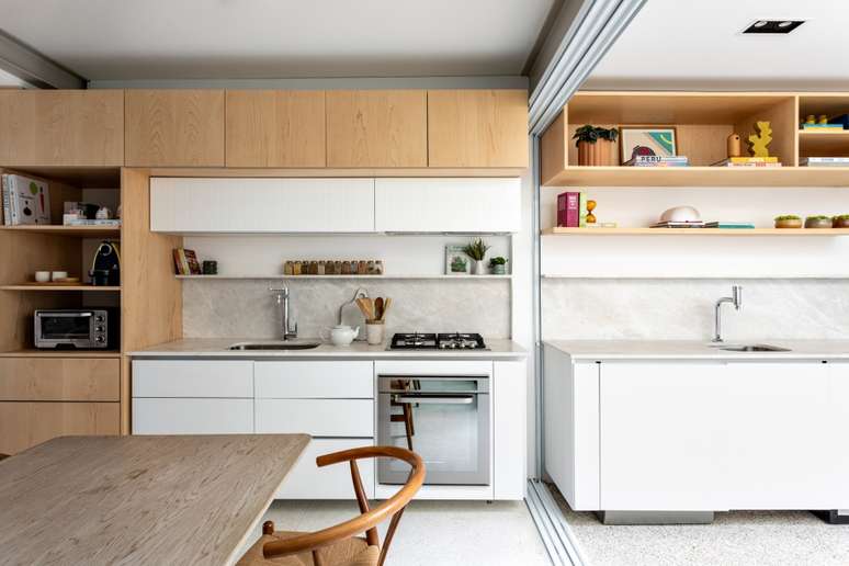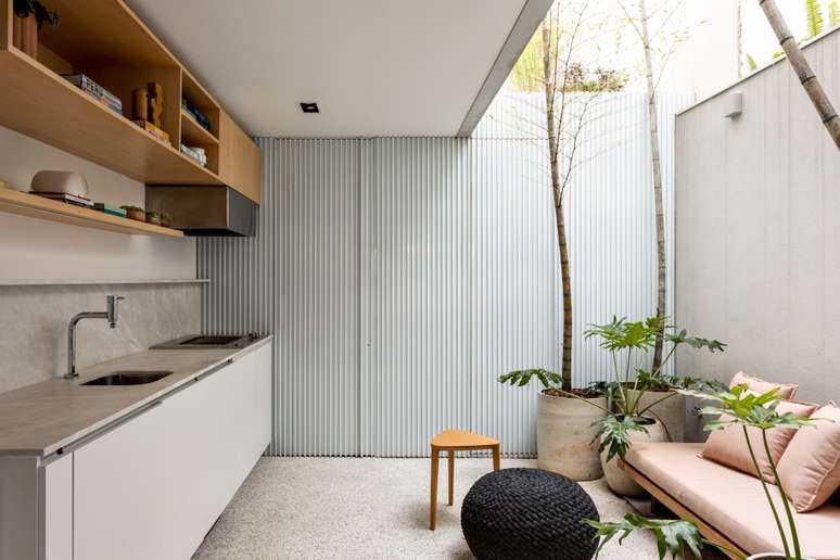 Projeto assinado por Amanda Castro e Giovana Giosa, do Studio AG, utiliza granilite, fulget, metal e madeira