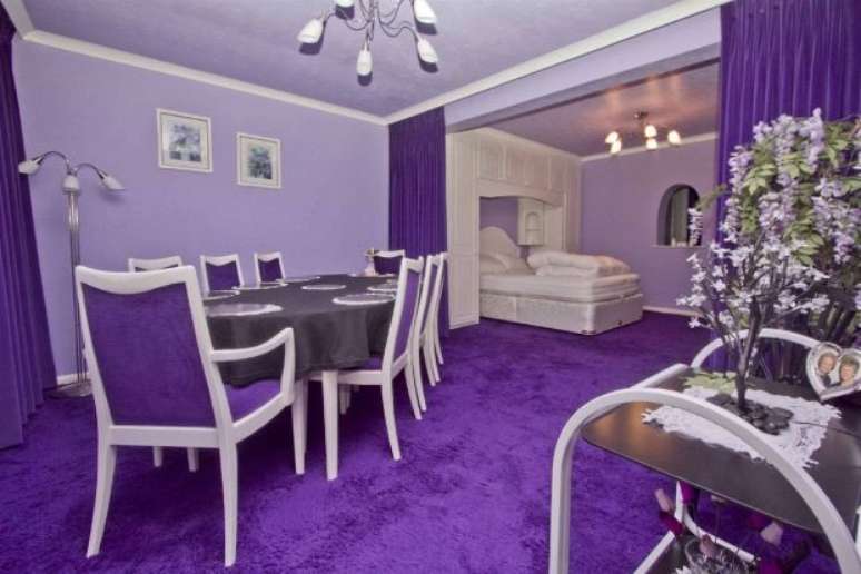 PUBLICIDADE Capa Vida e Estilo Casa e decoração Casa tem todos os cômodos decorados em roxo; veja fotos Compartilhar A casa está localizada em Hillingdon, Middlesex, em Londres, no Reino Unido Foto: Divulgação Casa no Reino Unido chama a atenção pela decoração: todos os cômodos são decorados na cor roxa Foto: Divulgação Por fora, o imóvel é discreto e não dá pistas sobre o excêntrico interior Foto: Divulgação Tudo leva a mesma cor: papel de parede, o carpete, os estofados, móveis e nem mesmo a cozinha ou os quartos escaparam do tema Foto: Divulgação Os quatro quartos da propriedade são predominantemente roxos Foto: Divulgação Para decorar a casa, foram usados diversos tons da cor Foto: Divulgação A única "pista" lilás na parte de fora se concentra em um pequeno vaso de flores na frente da casa Foto: Divulgação A casa está localizada em Hillingdon, Middlesex, em Londres, no Reino Unido Foto: Divulgação A propriedade está à venda por £ 400 mil (que corresponde a cerca de R$ 1.470.000,00) Foto: Divulgação O site em que está anunciada a residência, o Rightmove, descreve a decoração como "familiar", mas não dá mais informações sobre esta peculiaridade Foto: Divulgação Mas basta navegar pela barra de rolagem para conferir os principais cômodos e comprovar que a cor roxa predomina em todos os cômodos Foto: Divulgação Compartilhar Publicidade Compartilhar TAGS Casa e Decoração Vida e Estilo Publicidade