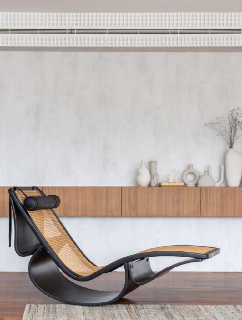 "A chaise de balanço Rio, do Oscar Niemeyer, era um sonho antigo dos clientes que eles conseguiram arrematar, casualmente, em um leilão, já na reta final de execução do projeto", acrescenta o sócio Rafa Gomes. Outras peças de design nacional também se destacam no décor, como as poltronas Astúrias de Carlos Motta, sofá modular Gomos da Suíte Arquitetos para Lider Interiores, a mesa de centro Grampo de Fernando Mendes, o banco Leiff e os banquinhos Mocho de Sergio Rodrigues, a poltrona Galeto de Luan Del Savio, as poltronas Paulistano de Paulo Mendes da Rocha e poltrona Jangada de Jean Gillon.
