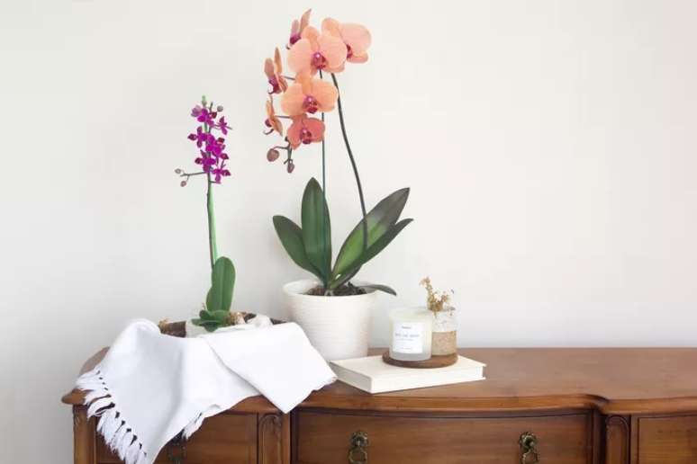 <img class="alignnone wp-image-399130 size-large" src="https://casa.abril.com.br/wp-content/uploads/2021/11/Decoração-de-mesa-de-centro-ideias-para-você-se-inspirar-07.jpg?quality=95&strip=info&w=1024" border="0" alt="Sala com orquídeas em vaso em mesa de centro" title="Decoração-de-mesa-de-centro-ideias-para-você-se-inspirar-07" width="1024" height="683" data-restrict="false" data-portal-copyright="Evelyn Muller" data-image-caption="A mesa de centro acompanha o 'mood' do ambiente, todo projetado com tons amadeirados. Na decoração do móvel, destaque para o lindo vaso cerâmico com orquídeas brancas.