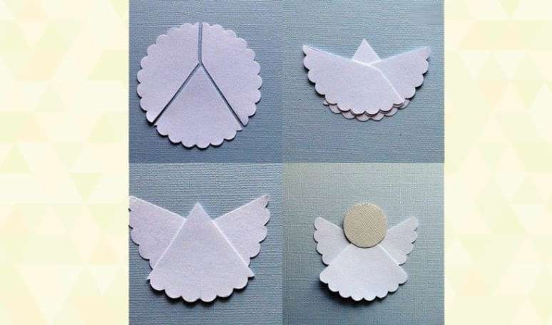 Outra forma de fazer anjinhos para decorar sua casa no Natal é utilizando papel-cartão. Corte no formato do molde e junte as peças, decorando como quiser. Use e abuse da criatividade!