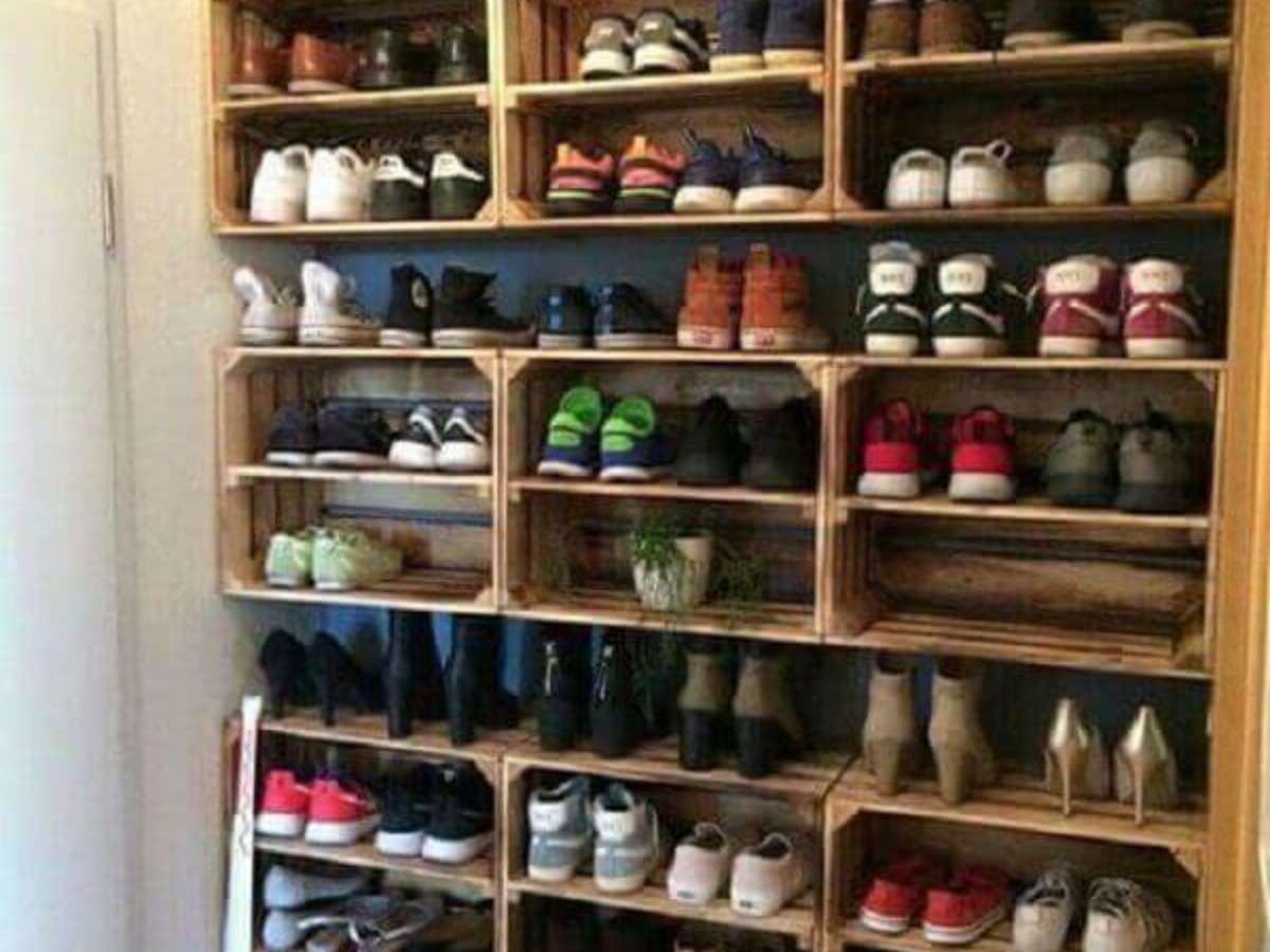 Veja como fazer uma sapateira de madeira com caixote de feira
