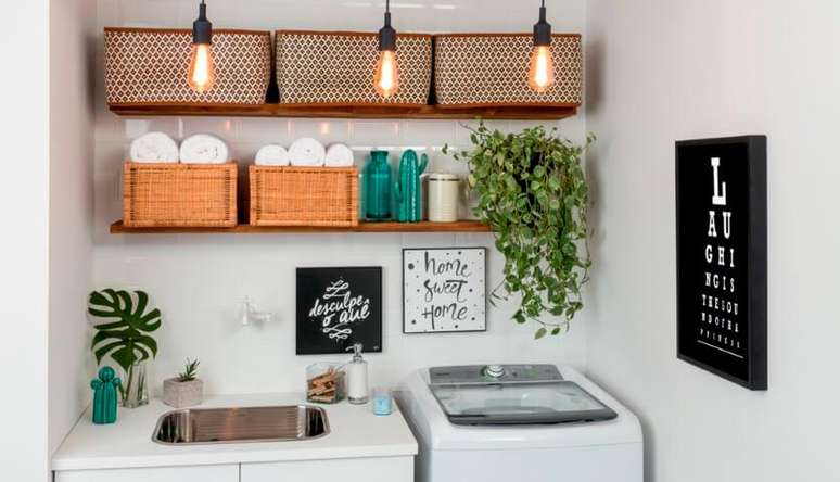 Os nichos e as prateleiras ficam perfeitos em locais com pouco espaço e você pode produzir sua lavanderia com caixas e cestos para armazenar roupas e produtos de limpeza. O cabideiro é excelente para pendurar camisas, vestidos e casacos enquanto secam ou até mesmo após serem passados para não amassarem antes de guardar. Enfim, são soluções simples que facilitam muito.