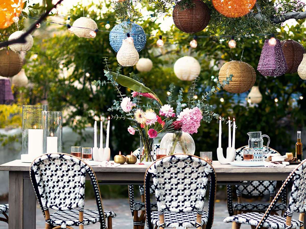 Pendure decorações em galhos de árvores e cercas e crie uma festa no jardim cheia de maravilhas.