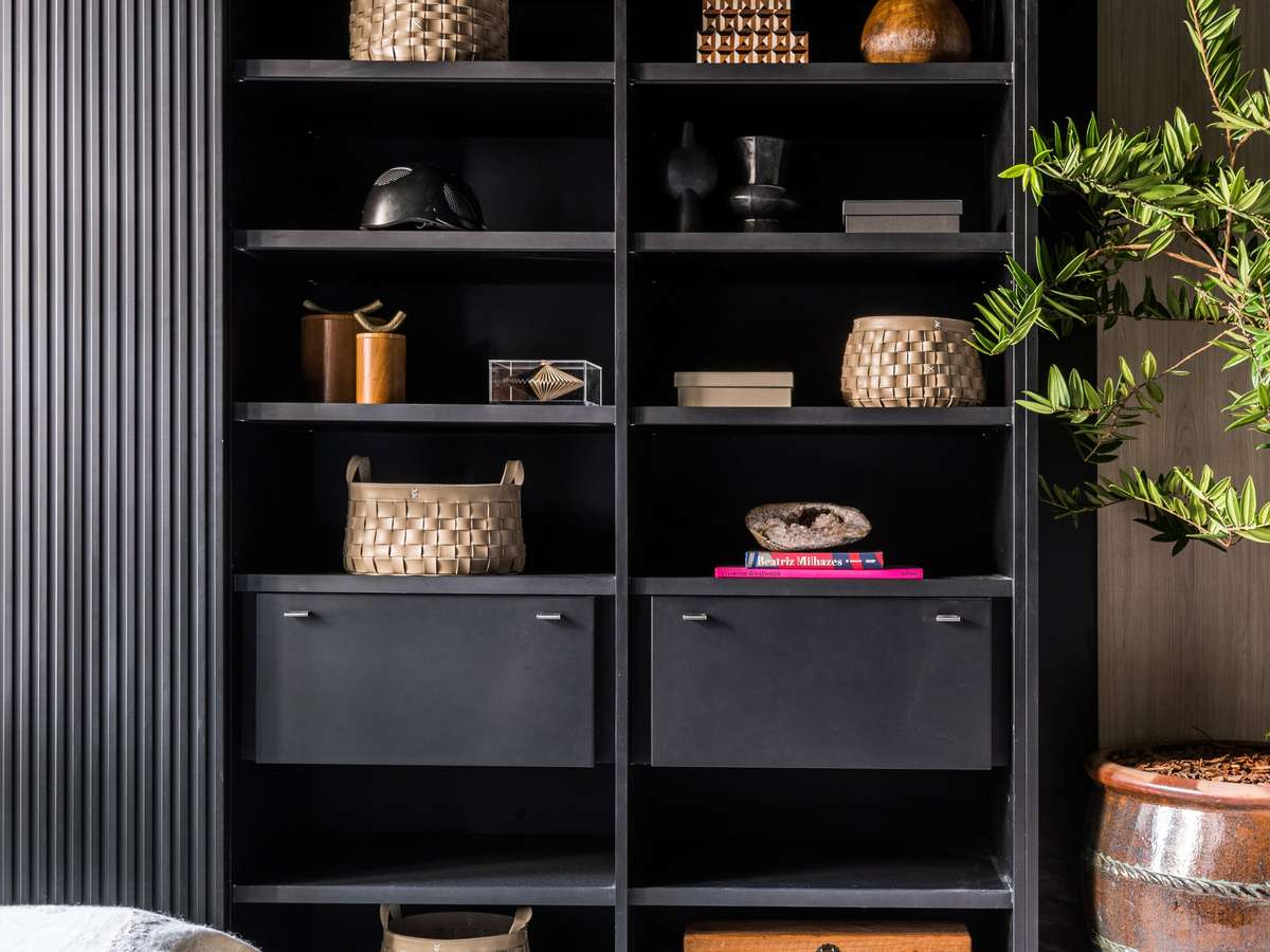 "O preto é um coringa entre os tons neutros e atende todos os estilos de décor, do clássico ao rústico, e sua presença indica imponência. Com ele, é possível explorar diferentes abordagens até encontrar a combinação que melhor reflete a personalidade do morador", explica o casal de arquitetos.