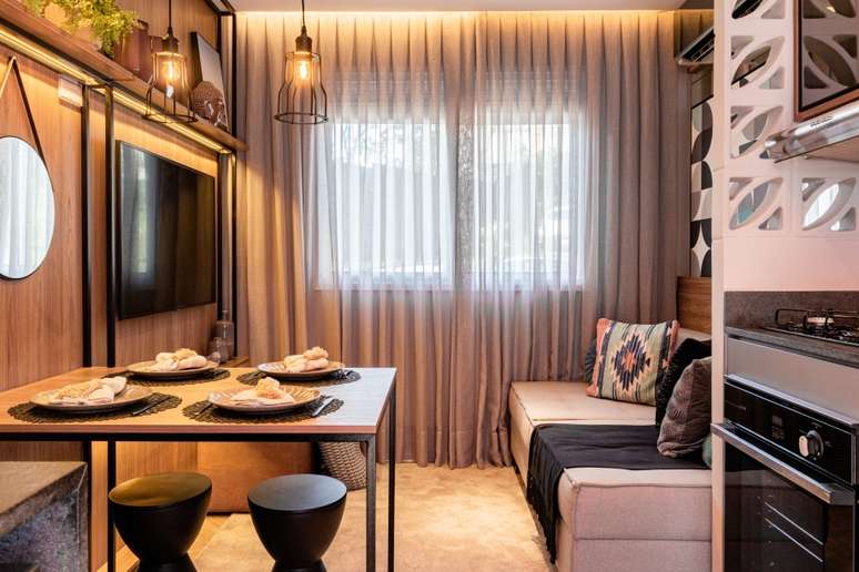 Compacto e aconchegante: apê de 35m² aposta na marcenaria planejada