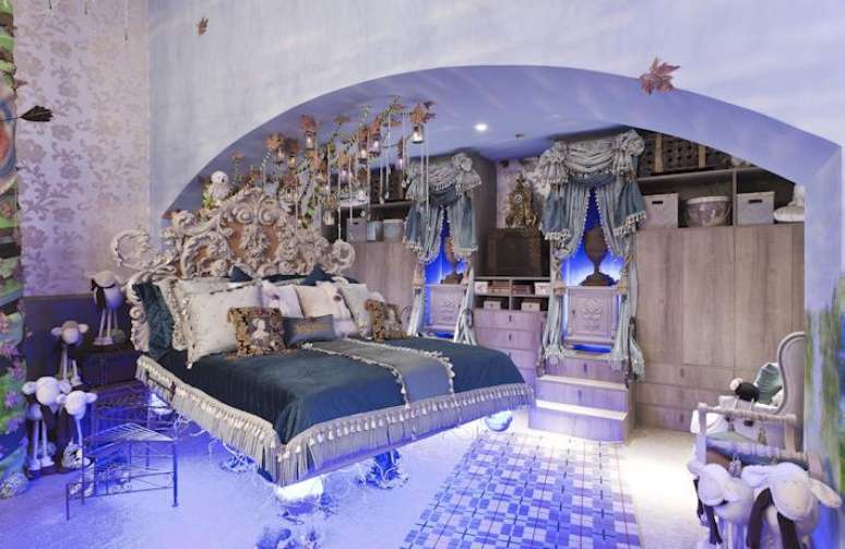 As peças escolhidas pelo arquiteto Luis Pedro Scalise para compor o quarto são peças que remetem a um castelo. O ambiente possui pinturas de campos escoceses nas paredes, um lustre com estilo típico, um gazebo de ferro, uma penteadeira com banco de sela de cavalo e um armário com passagem secreta para o banheiro