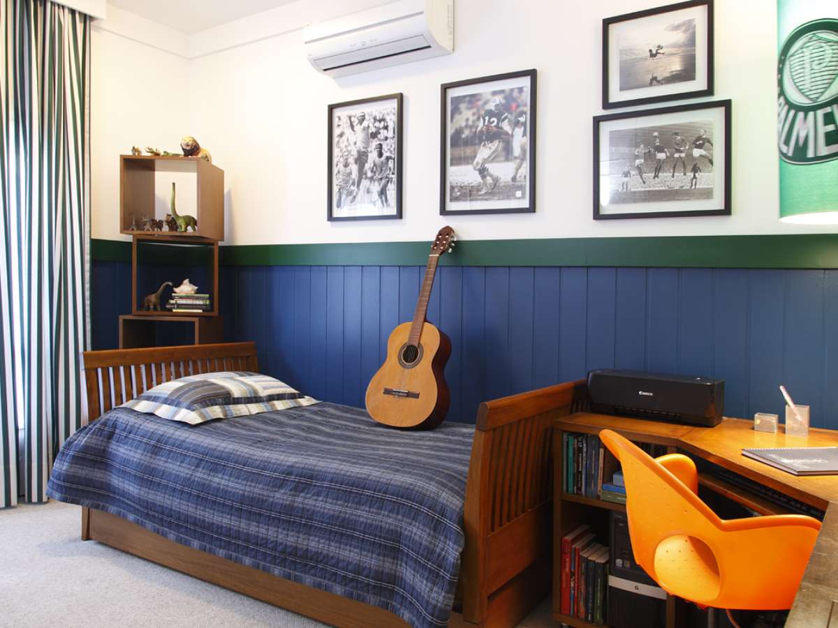 A inspiração veio do esporte, assunto querido pela maior parte dos garotos. Hoje as crianças estão mais atualizadas. Ninguém mais quer quarto de criança. O menino quer saco de boxe no quarto, ele faz muay thai e assiste ao UFC. Foi a tendência que eu segui na Casa Cor, explica Gerson