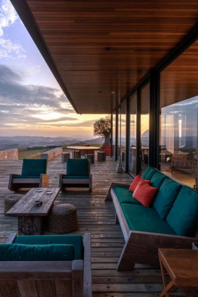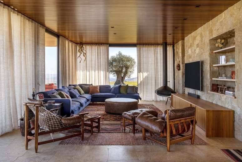 "O mobiliário e as cores escolhidas para o living - terracota, azul escuro e verdes - procuraram o conceito de rústico contemporâneo para tornar o ambiente aconchegante", explica a profissional.