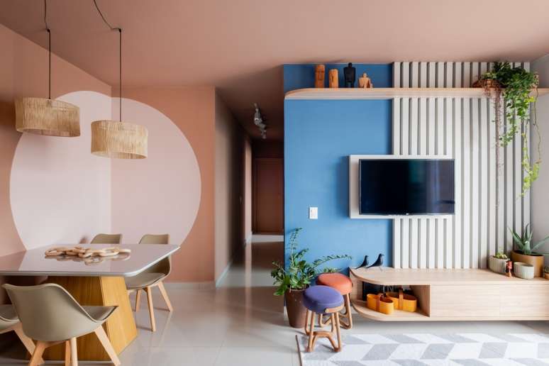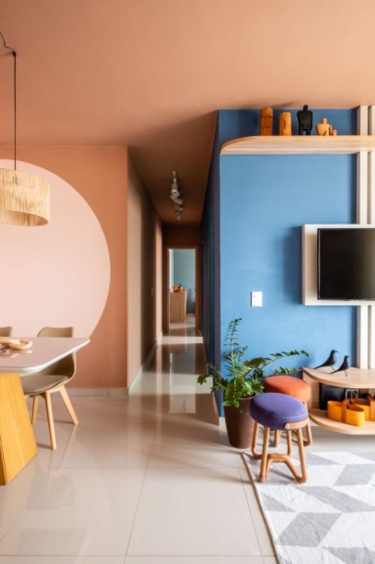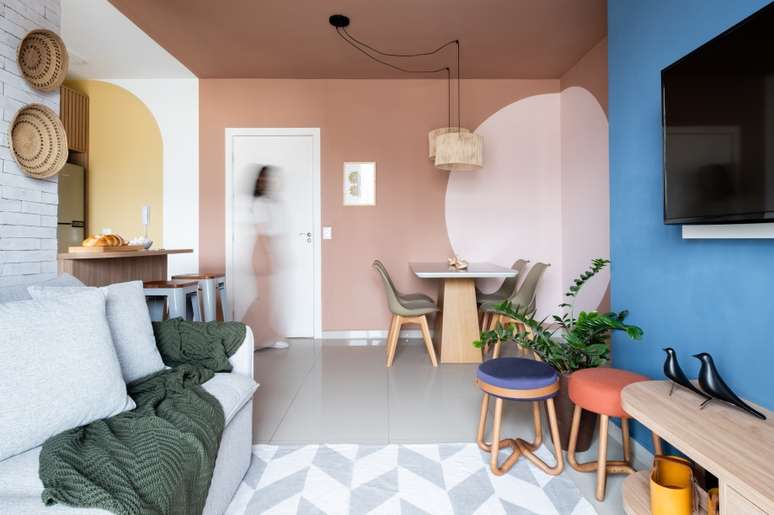Cores alegres e formas arredondadas marcam apê de 66m²