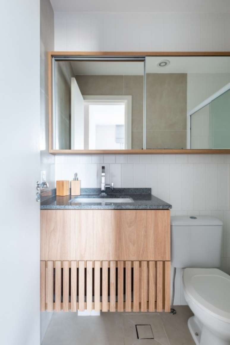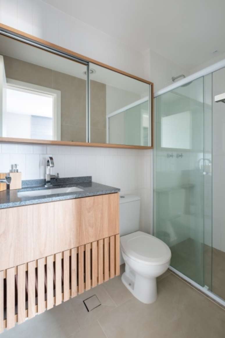 O piso, box de banheiros, louças e metais foram mantidos como forma de economizar na obra.