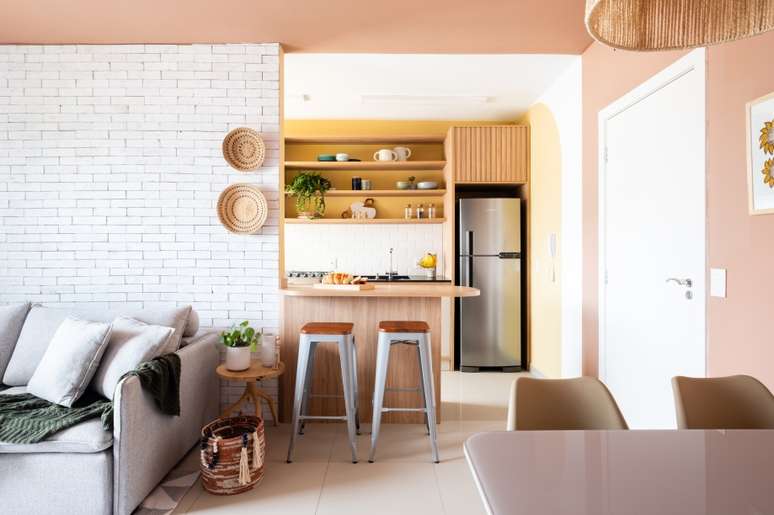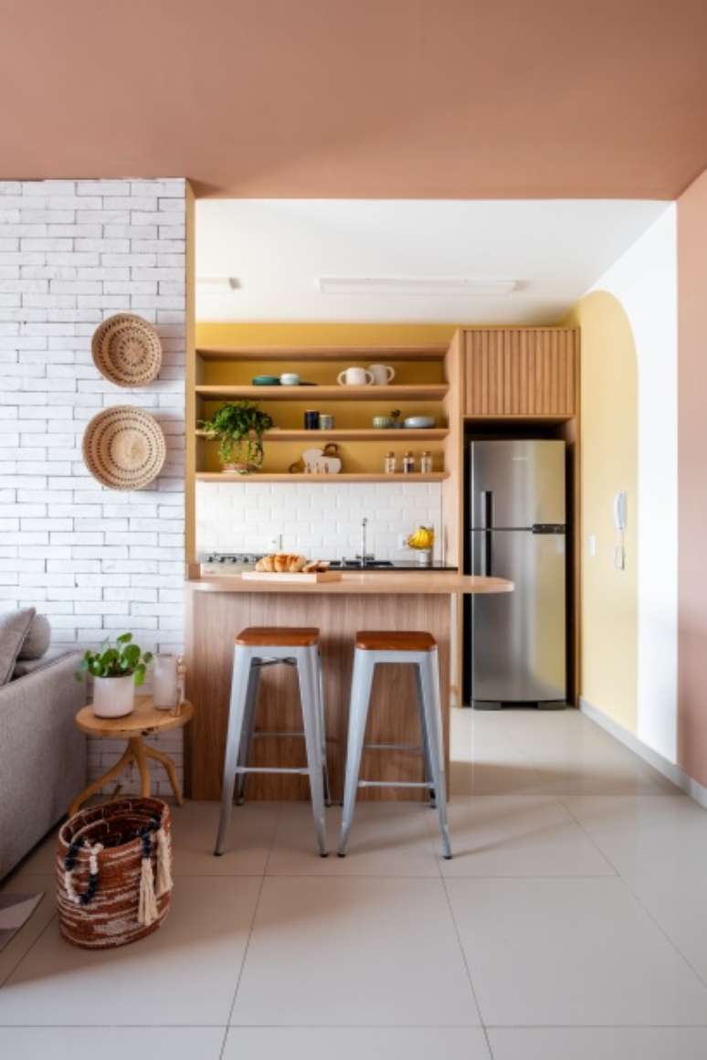O projeto, assinado pelo escritório Tina Arquitetura, realizou um projeto que transmite as heranças culturais da moradora, que veio do Ceará para São Paulo