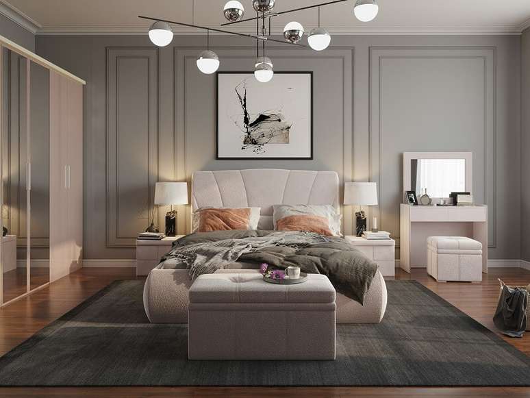 Bom, primeiro vamos citar os tons de fato neutros, como o branco, cinza e bege. Para uma proposta mais clean, essas são ótimas opções para as paredes e também para os móveis (principalmente o branco). Esses dois serão como a base do quarto, o que mais chamará a atenção, pois estarão em proporções maiores.