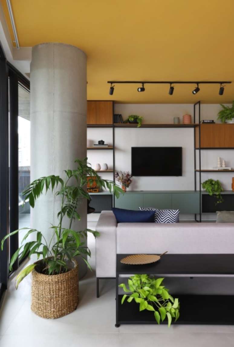 O projeto, assinado pelo Studio 92 Arquitetura, apostou em cores marcantes nas paredes e também no teto para imprimir a personalidade dos moradores
