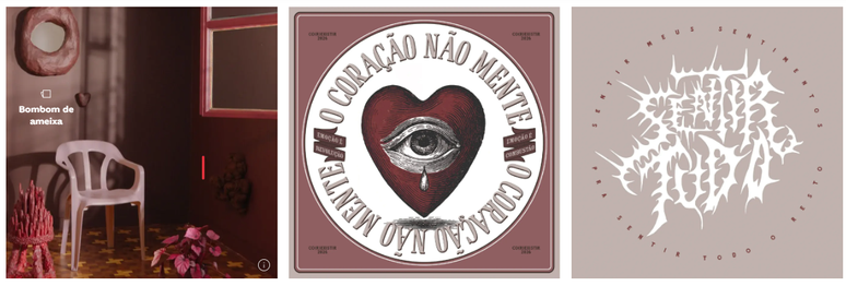 - Cores: vermelho, laranja, rosa, púrpura, violeta