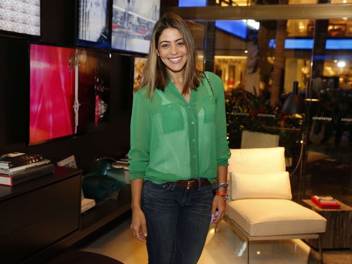 A atriz Carol Castro foi uma das convidadas da festa de lançamento da Mostra Artefacto 2014, no CasaShopping, na Barra da Tijuca, Rio de Janeiro, na noite do último sábado (22). De jeans e bota de salto, ela optou por uma blusa verde transparente e um regatinha branca por baixo para dar o toque colorido para o visual. Investiu também em pulseiras.