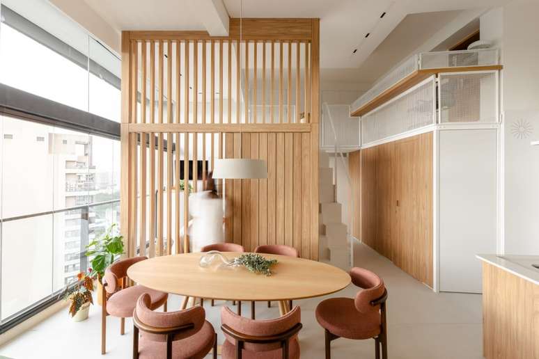 O ripado de madeira ainda segue sendo muito procurado para as divisórias, na forma de painel. No entanto, as profissionais dizem que a tendência agora está nos ripados assimétricos com ripas espaçadas de maneira aleatória ou de larguras diferentes. "As ripas mais largas também estão mais em alta, em vez das menores", acrescentam.