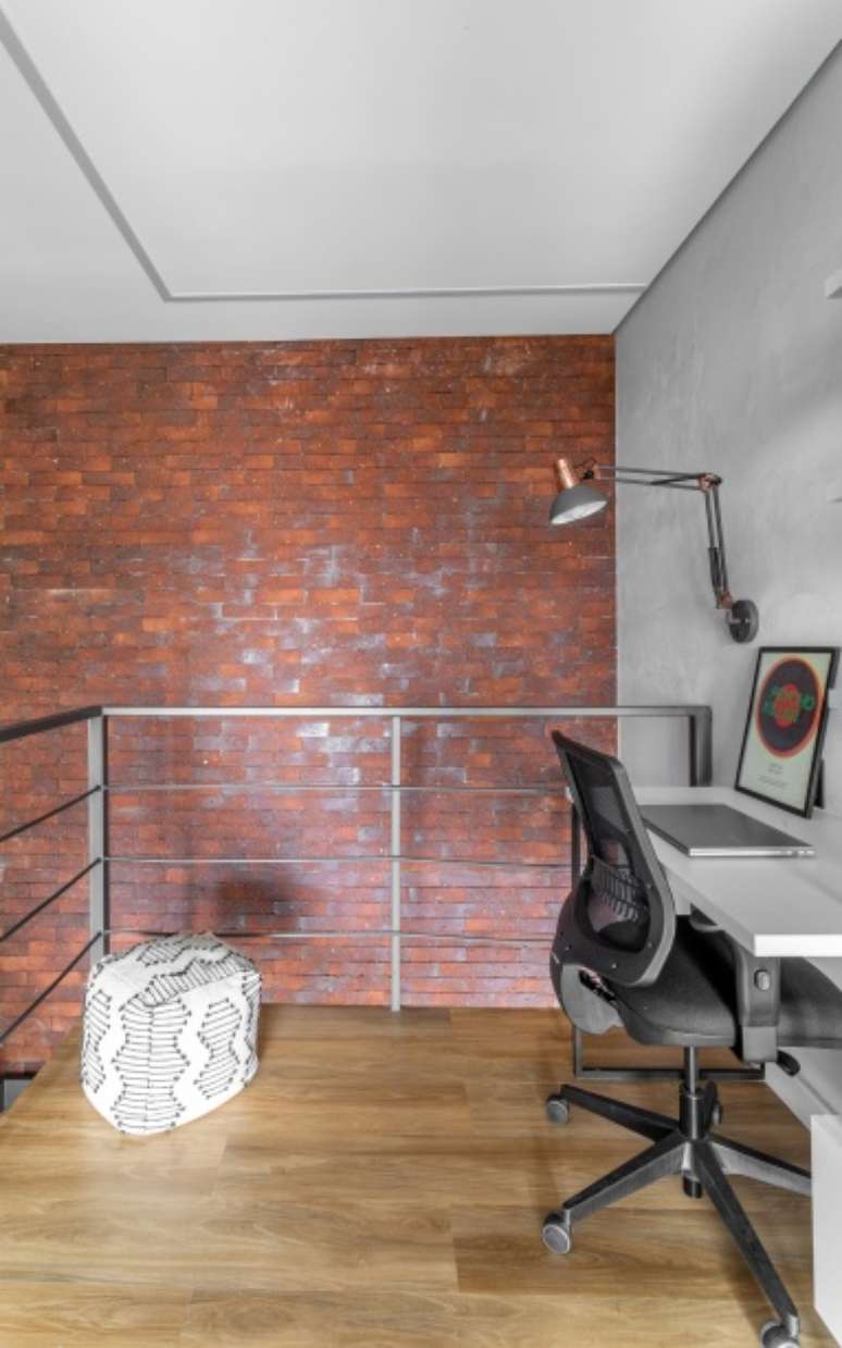 "O Anderson pediu para construir um mezanino na sala e manter a varanda aberta, mesmo notando que nos outros apartamentos do prédio os moradores a tinham fechado para ganhar espaço interno. Ele também nos pediu um apê confortável, com espaço para receber visitas e dar muitas festas, já que, nas horas vagas, seu hobby é ser DJ e tocar para os amigos. Então, o mezanino seria o local perfeito não só para acomodar a mesa de som dele como também um pequeno escritório que pudesse atendê-lo eventualmente", conta a arquiteta Kênia.