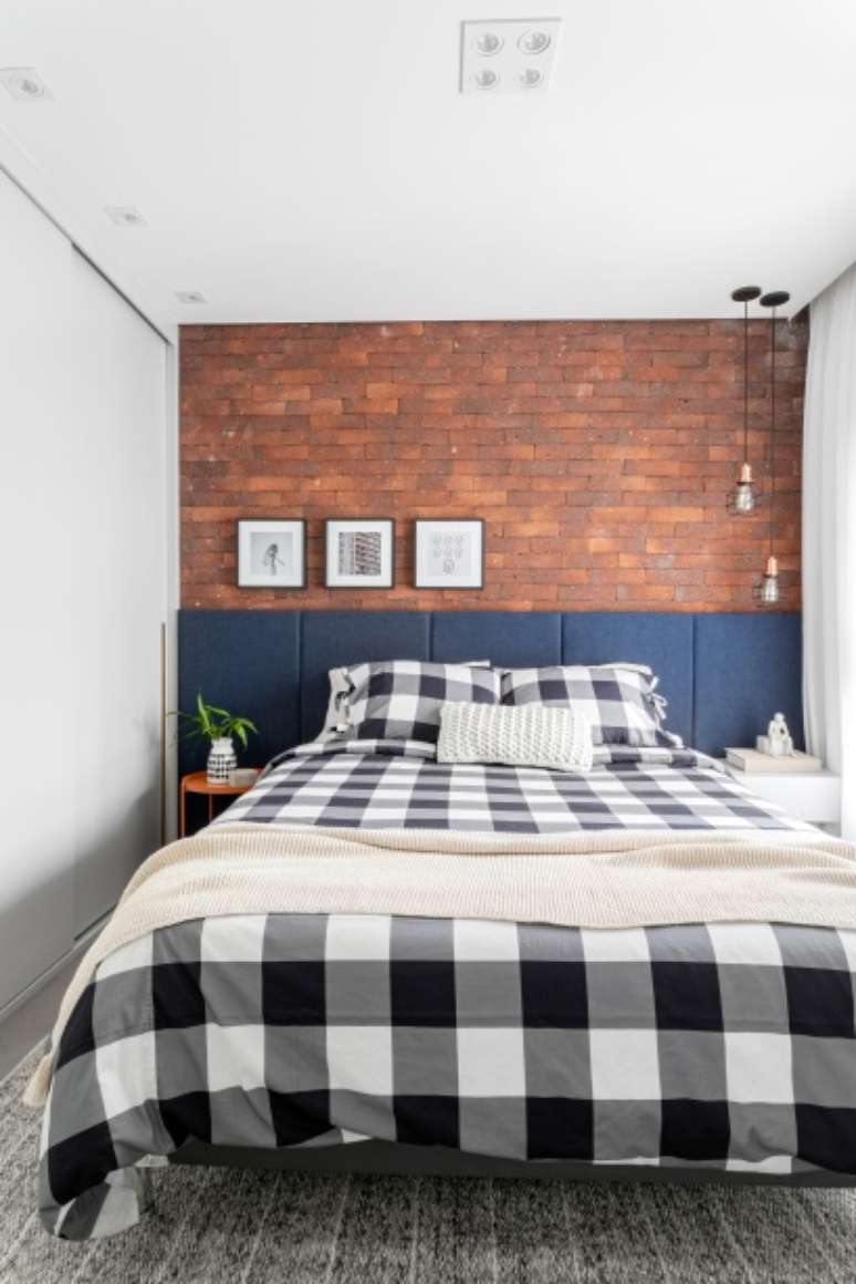 No décor, como o cliente pediu um apartamento contemporâneo, com decoração inspirada no estilo industrial e toques de cor, as arquitetas abusaram do tijolinho num tom natural envelhecido, acabamentos de piso e parede que lembram cimento queimado, serralheria preta e letreiros de parede com luz de néon.