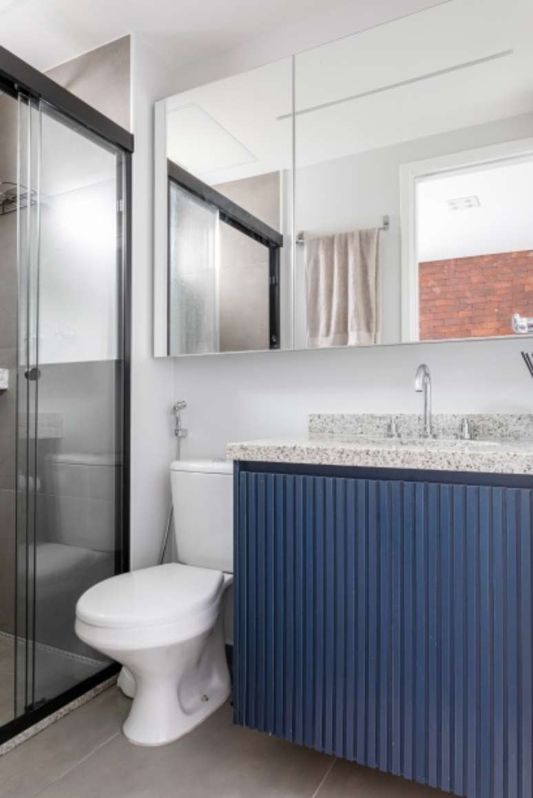 Ao longo de todo o guarda-corpo da varanda, foi instalado um banco de madeira em dois níveis que não só promove a integração visual do espaço como também cria inúmeros assentos extras para os dias de casa cheia. "O lavabo é outro ponto alto do projeto. Aqui, adotamos um visual mais instagramável porque sabíamos que o apartamento seria palco de muitas festas e encontros", finaliza Giulia.