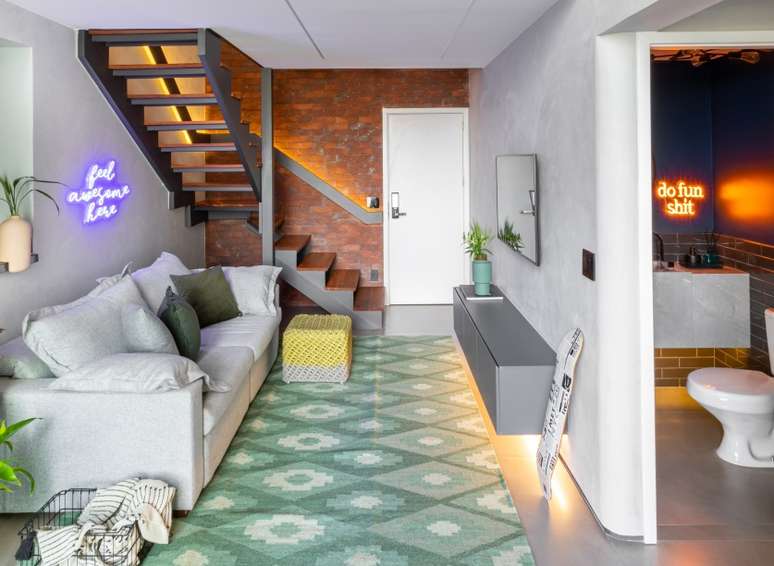 Dúplex de 97 m² tem espaço para festas e lavabo instagramável