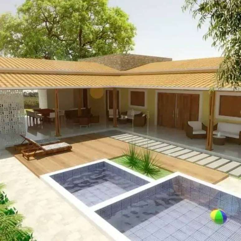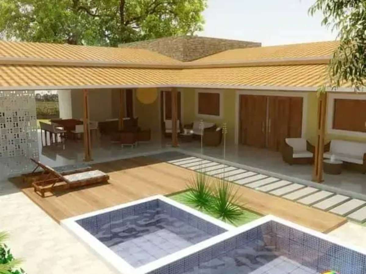 Para aproveitar ao máximo o espaço da área de lazer você pode construir uma edícula com piscina em L. No entanto, fique atento quanto as dimensões de ambas as construções para que a área de lazer não fique sufocada. Piscinas retangulares e quadradas normalmente são ótimas opções, pois suas estruturas se alinham diretamente com o formato da edícula em L.