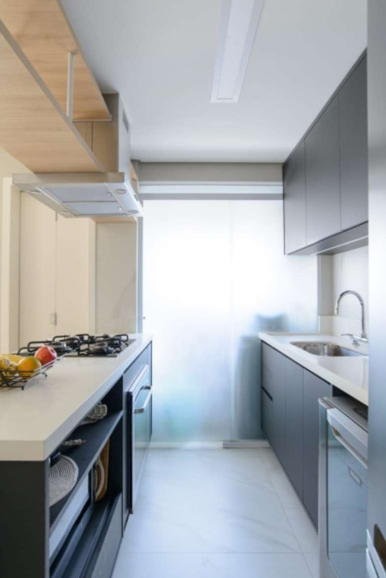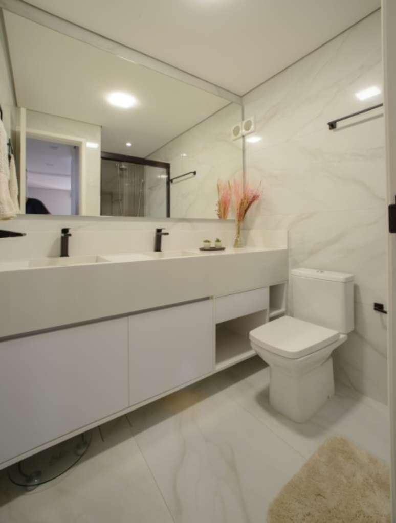 Foi uma mudança que aliou o útil ao agradável - tendo duas cubas, o casal pode usá-las simultaneamente ou ter cada um a sua, dividindo seus objetos de higiene separadamente", conclui a arquiteta Caroline Monti.