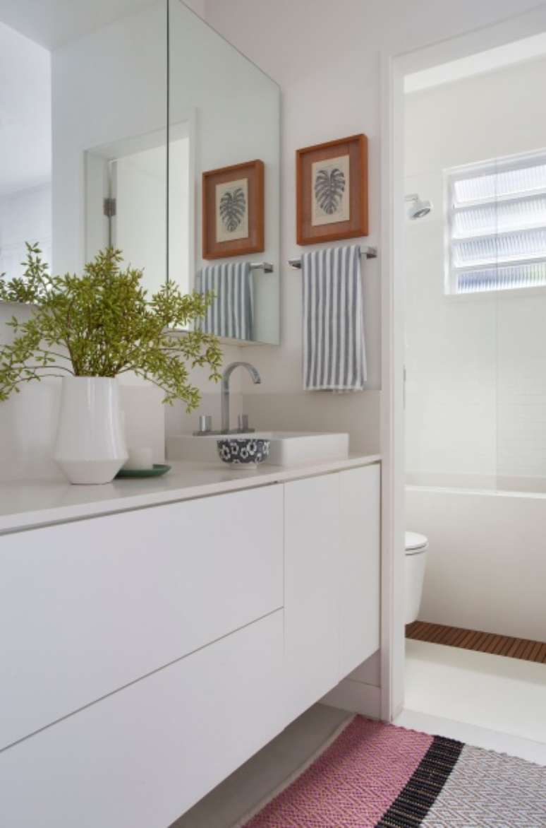 Assinado pela arquiteta Adriana Esteves, o projeto adotou piso frio, poucos móveis e décor de base branca