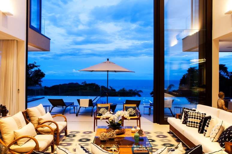 Com o conceito de integração dos ambientes, o home theater, as salas de estar e jantar e o espaço gourmet têm vista para a piscina, a natureza e o mar. E em todos eles há a preocupação de privilegiar o convívio familiar e dos amigos.