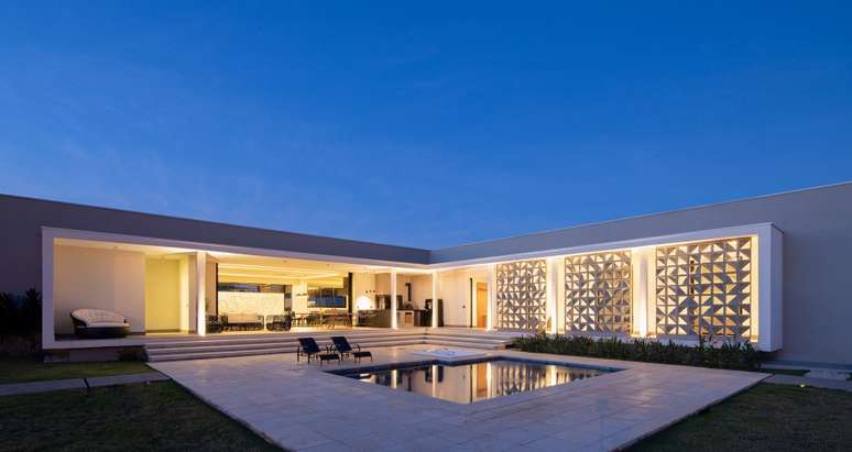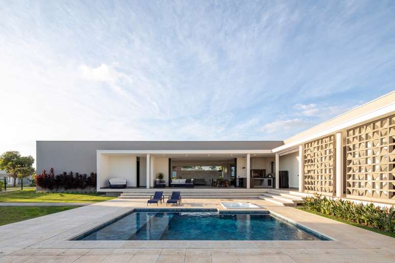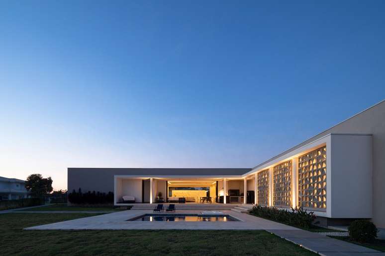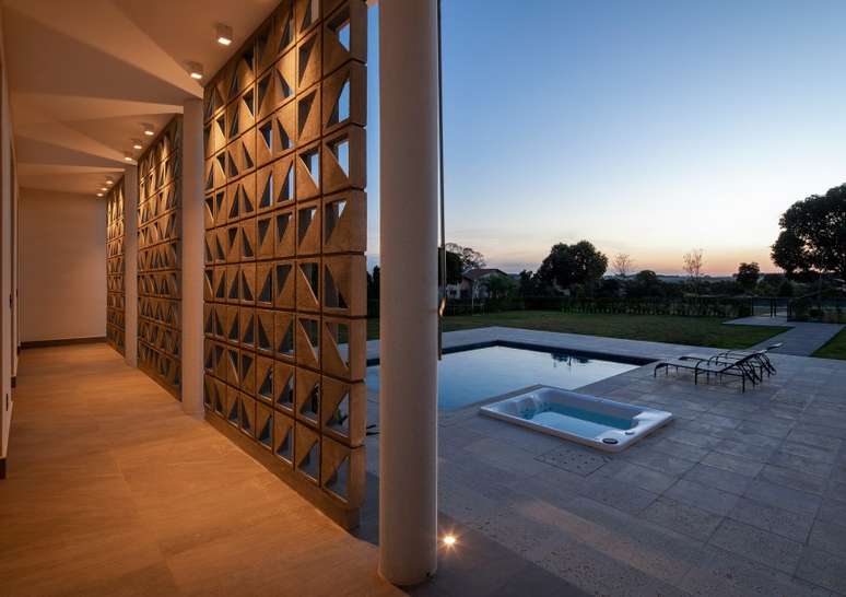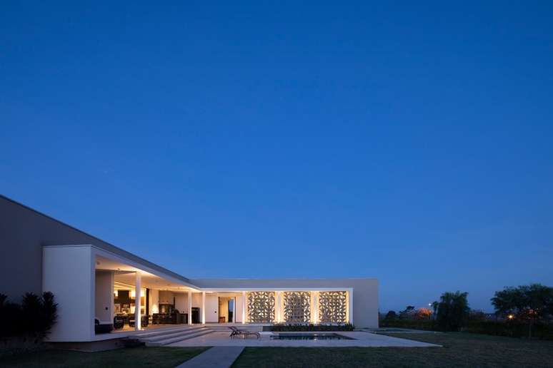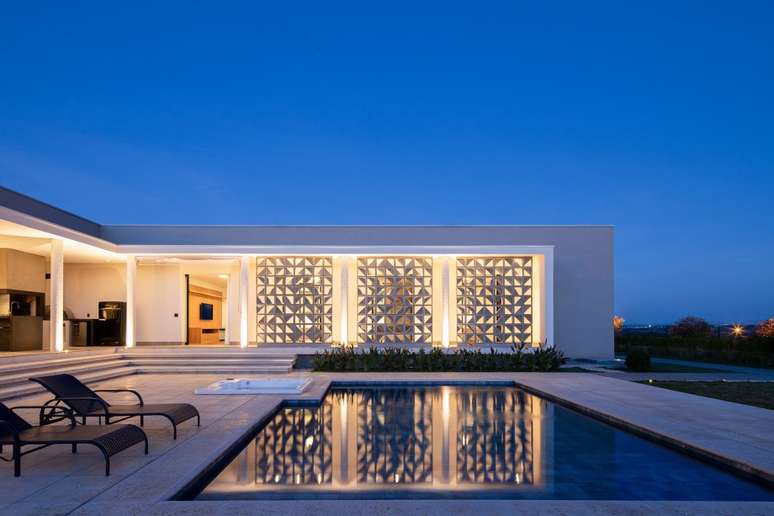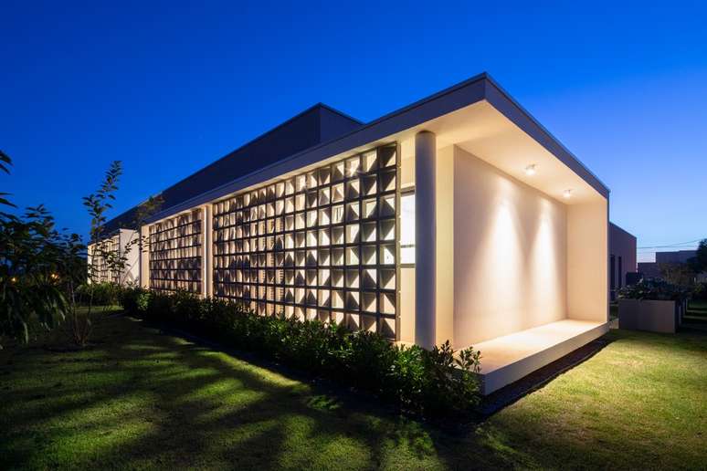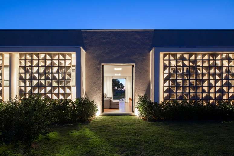 Fachada de cobogós cria efeito cênico nesta casa no interior de São Paulo