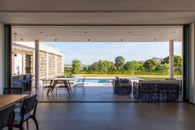 Assinada pelo escritório STarq Arquitetos, esta casa em Jaguariúna, no interior de São Paulo, foi executada como uma residência para apreciar os finais de semana e recebeu ambientes amplos, com circulação fluida e espaços bem acolhedores para o convívio social da família e dos amigos.