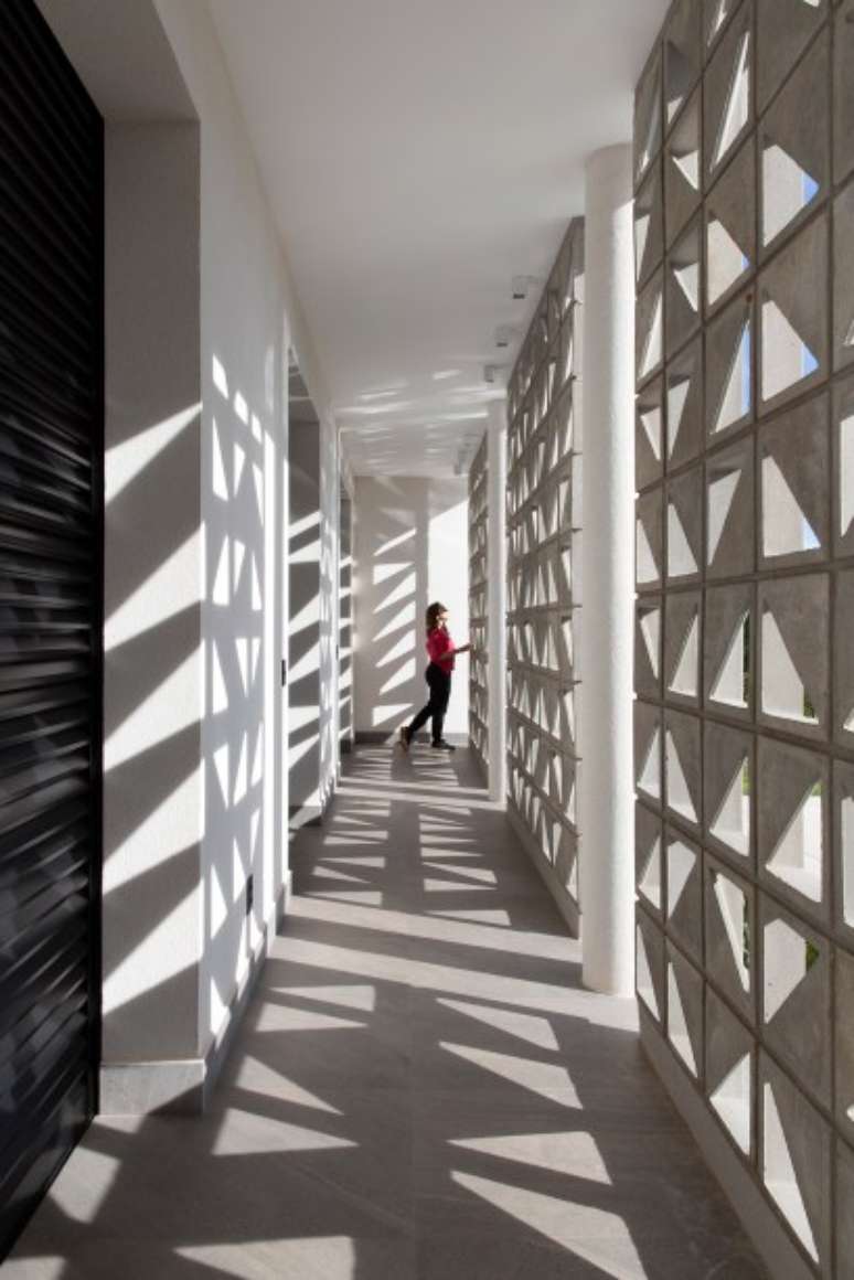 Considerando as elevadas temperaturas da cidade, o projeto incorpora abas e cobogós para proteger a região dos dormitórios e dos espaços sociais da insolação direta.