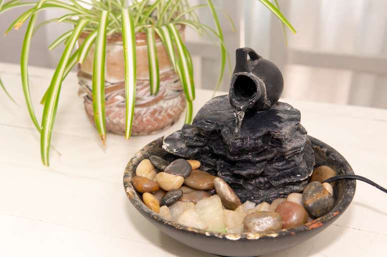 Elas podem ser externas (construídas num jardim) ou internas (instaladas sobre um aparador). No caso de fontes internas, é fácil encontrá-las em lojas de artigos místicos. Uma vez que estão associadas ao elemento água, as fontes atraem riqueza para os moradores, e permitem que o fluxo energético se mantenha em movimento. Aquários e tanques com peixes têm a mesma finalidade. Porém, caso queira manter peixes em casa, é fundamental buscar orientações junto a um especialista para garantir os cuidados necessários.