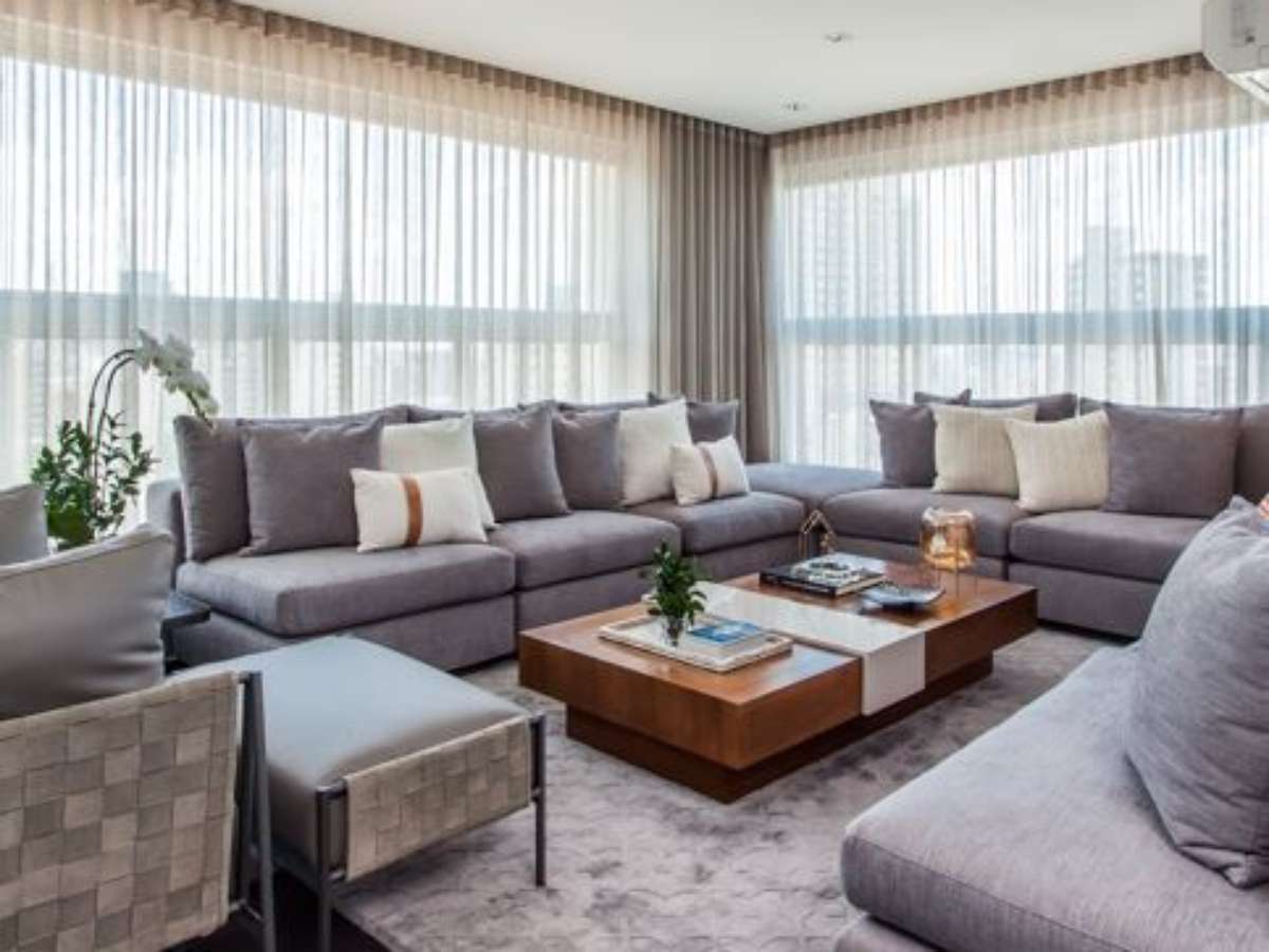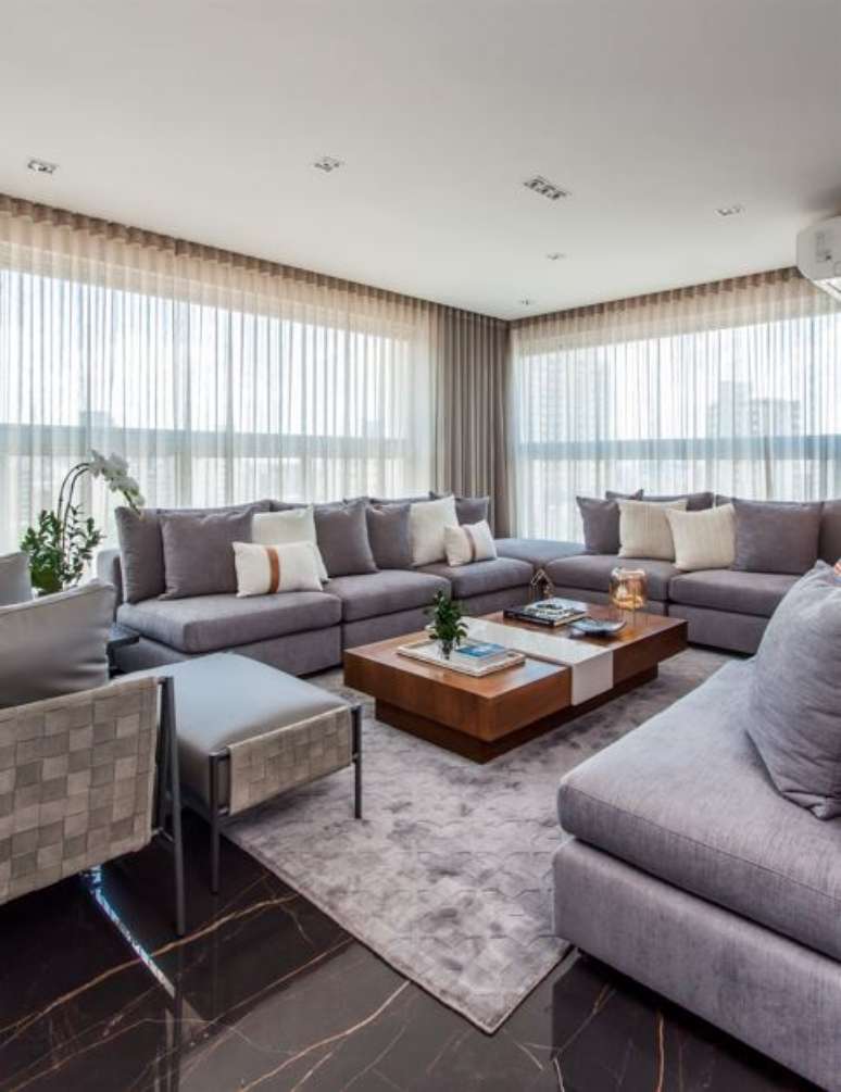 Integrada ou não, a varanda é um respiro das demais salas e também onde se conduz a virada das noites para assistir os fogos de artifício. Por isso, dê preferência a bancos estofados, cadeiras confortáveis e iluminação indireta para trazer suavidade ao cômodo e convidar a permanecer.