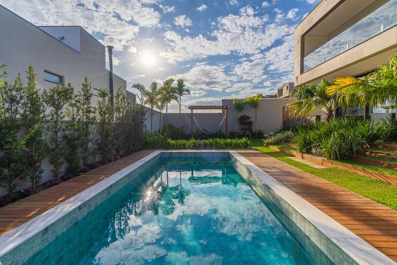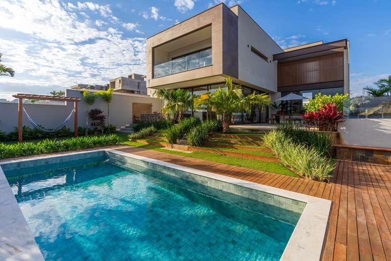 Com projeto de Beth Araújo e paisagismo de Renata Guastelli, o projeto tira partido da declividade do terreno