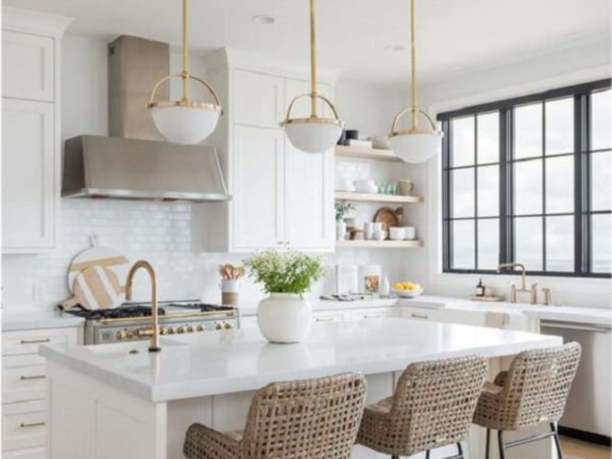 12. Bancada de granito claro em l para cozinha compacta – Foto Studio McGee