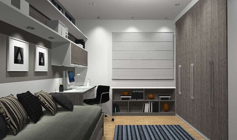 36. O guarda roupa planejado também é uma excelente opção para quarto de solteiro pequeno