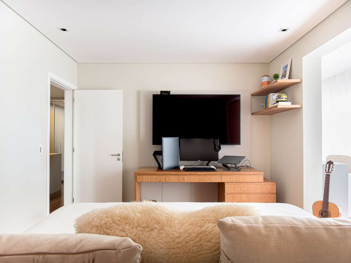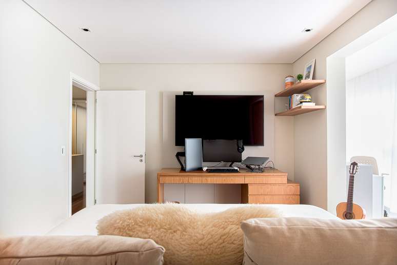 "Quanto mais coisas sobre o móvel, mais fácil é de chegar ao visual 'entulhado'. Isso atrapalha a nossa concentração e dá espaço para a bagunça aparecer. Os itens que não são usados com frequência podem ficar armazenados em gavetas, por exemplo", conta Carina.