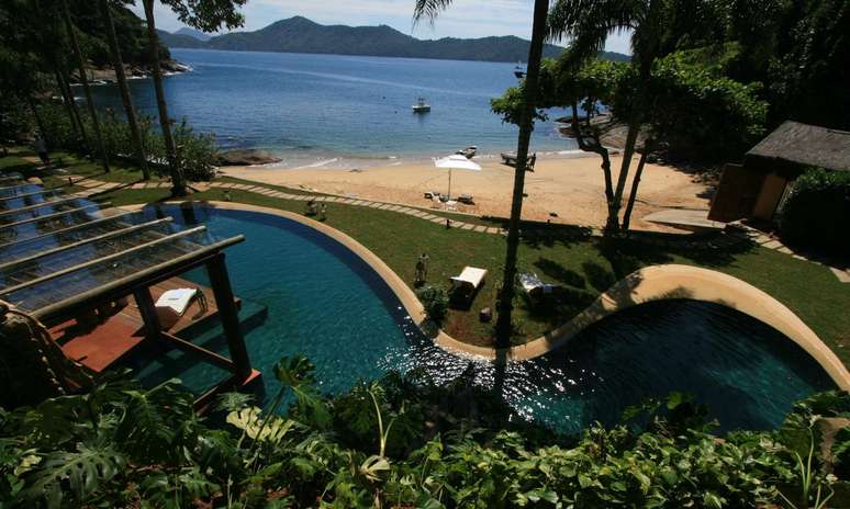 Piscina e jardim quase se mesclam e compartilham a mesma linda vista do marFoto: Leonardo Finotti