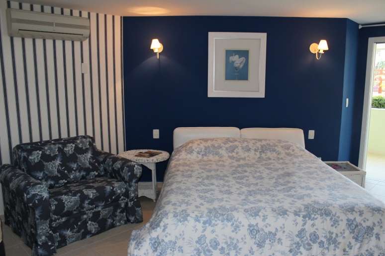 No quarto projetado pela arquiteta Denise Monteiro, a estampa florida da poltrona combina com a estampa florida da colcha. Informações: (11) 3167-6347