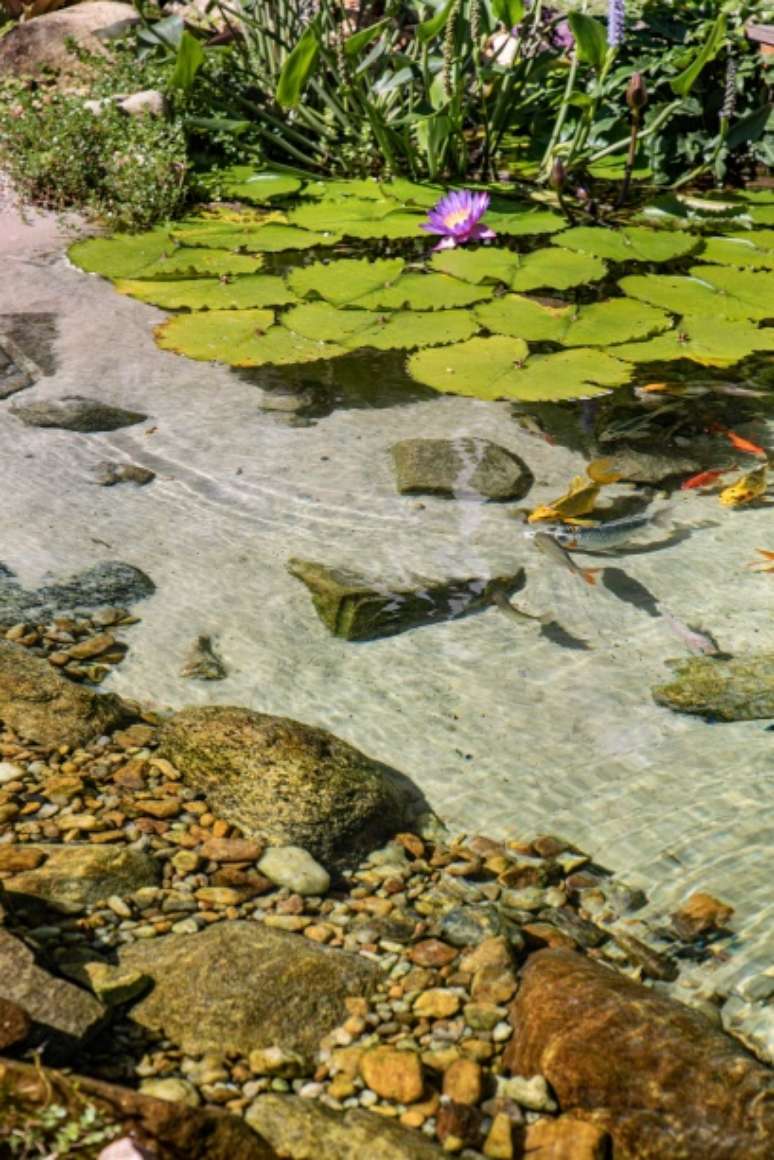 "Contamos com filtragem mecânica, química, biológica, UV, Ozônio e biovegetal, onde cada elemento do filtro e do lago têm um papel importante no equilíbrio deste pequeno ecossistema, formado por rochas naturais, seixos de rio e areia especial, e habitado por peixes ornamentais e funcionais", explica Bernardo.