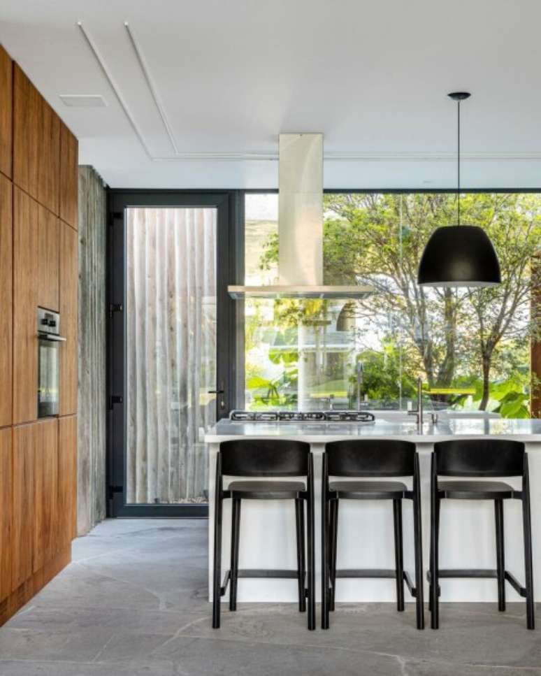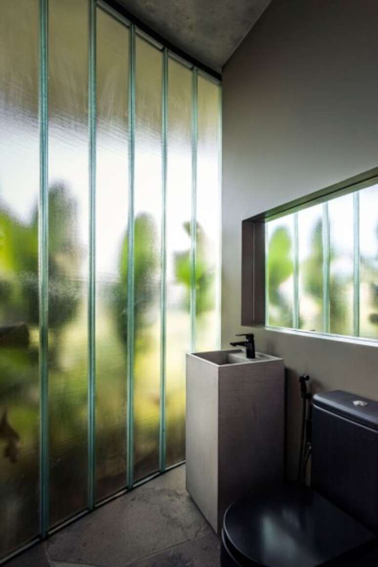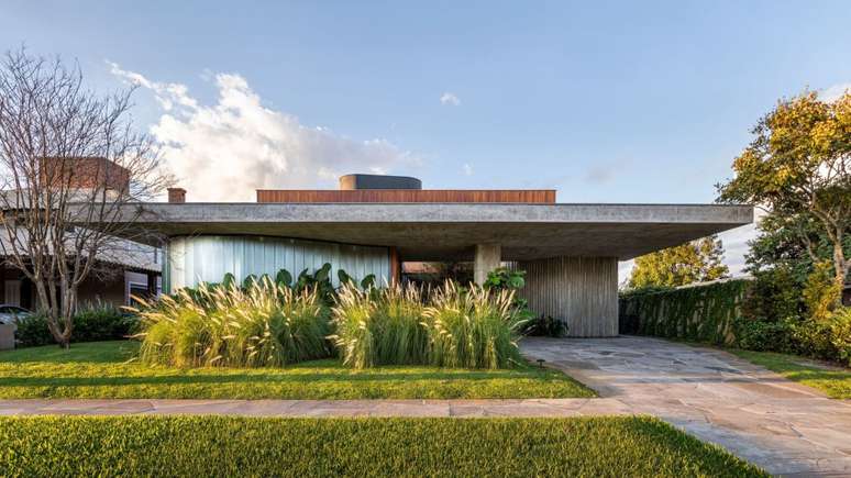 São 407 m² de área construída, dividida em dois pavimentos e sua construção em concreto aparente apresenta componentes em madeira e vidro.
